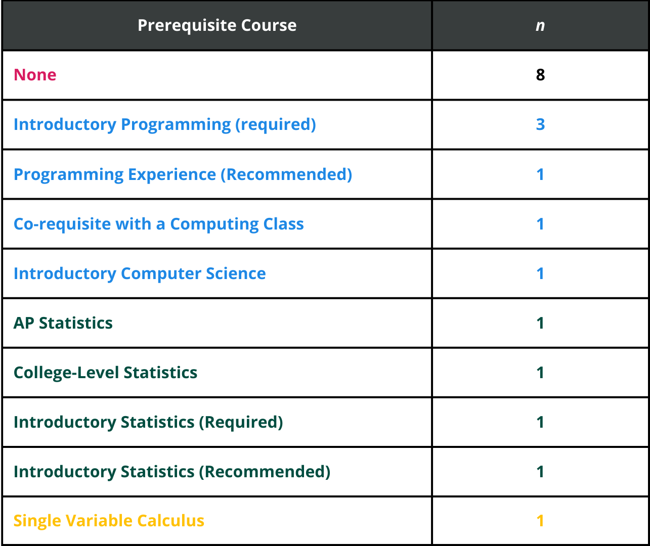 whose course titles included Data Science and one of the following keywords: Introduction, Principles, Elements or Fundamentals