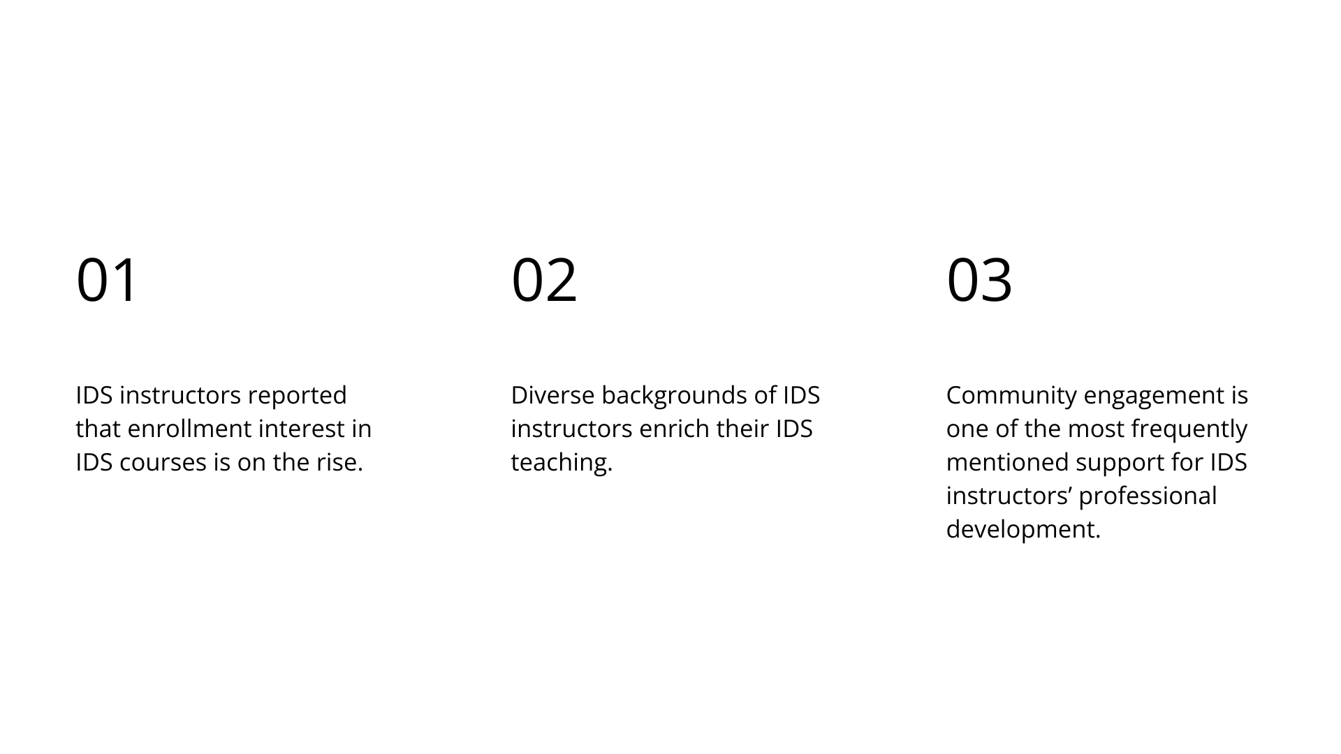 Despite high self-efficacy beliefs, the IDS instructors wondered how well their course aligns with the growing consensus on